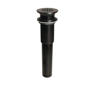 Keeney's decorative grid style bathroom sink drain is an ideal solution for use with popular sink styles, such as pedestal, vessel, drop-in, and under-mount. It is ideal for sinks without an overflow, featuring a 1-1/4-in standard outlet pipe that fits sink drain holes at least 1.5-in diameter. The elevated finish and solid brass construction provide long-lasting durability with a continuously draining open grid. Available in polished chrome, brushed nickel, and bronze. Application: Bathroom Sink. Color Family: Oil Rubbed Bronze. Color/Finish: Oil Rubbed Bronze. Finish: Oil Rubbed Bronze. Material: Brass. Pack Size: 1. Plumbing Part Type: Drain. Strainer Included: Yes. Product Depth (in.): 2.25 in. Product Height (in.): 6.80 in. Product Width (in.): 5.50 in. Application: Bathroom Sink. Material: Brass. Plumbing Part Type: Drain. Finish: Oil Rubbed Bronze.