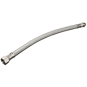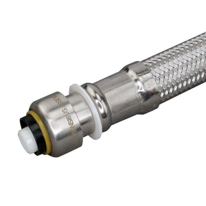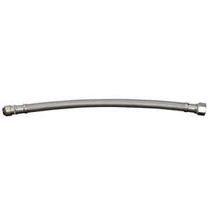 The Everbilt 1/2 in. PTC x 3/4 in. FIP x 18 in. Braided Stainless Steel Water Heater Connector is designed for the fast and simple installation of hot and cold water lines to water heaters. After applying pipe thread tape to the MNPT nipples on your water heater, thread the FNPT end of the Water Heater connector onto the tank and tighten with pliers. Then simply push the Push-To-Connect end onto Copper, PEX, or CPVC pipes and your water heater is connected.. Application: Potable Water. Compatible Brand/Model: Multiple. Finish Family: Silver Metallic. For Use With: Electric Tank,Electric Tankless,Gas Tank,Gas Tankless. Material: Stainless Steel. Pack Size: 1. Product Weight (lb.): .73 lb. Returnable: 90-Day. Product Depth (in.): 18 in. Product Height (in.): 1.29 in. Product Length (in.): 18 in. Product Width (in.): 1.29 in. Material: Stainless Steel. Finish Family: Silver Metallic. Product Length (in.): 18 in