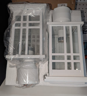 Elevate your outdoor decor with this modern farmhouse-style post lantern, featuring a durable aluminum and metal construction in a sleek white finish complemented by a clear glass shade. It offers weather resistance and long-lasting reliability, making it ideal for driveways, gardens and patios alike. Installation is quick and easy with all necessary hardware included, ensuring a hassle-free setup process.. Compatible Bulb Type: CFL,Incandescent,LED. Durability: Weather Resistant. Exterior Lighting Product Type: Post and Lamp Set. Fixture Color/Finish: White-2 PK. Fixture Material: Aluminum. Glass Type: Clear Glass. Included: Hardware Included. Light Bulb Base Code: E26. Light Bulb Type Included: No Bulbs Included. Max. Bulb Wattage (W): 60 W. Maximum Wattage (watts): 60. Number of Bulbs Required: 1. Number of Lights: 1 Light. Outdoor Lighting Features: No additional features. Power Source: Hardwired. Product Weight (lb.): 3.9 lb. Recommended Light Bulb Shape Code: A19. Shade Material: Glass. Voltage Type: Line Voltage. Certifications and Listings: UL Listed. Product Depth (in.): 6 in. Product Height (in.): 11 in. Product Width (in.): 6 in. Power Source: Hardwired. Fixture Material: Aluminum. Number of Lights: 1 Light. Durability: Weather Resistant. Exterior Lighting Product Type: Post and Lamp Set. Outdoor Lighting Features: No additional features. Voltage Type: Line Voltage