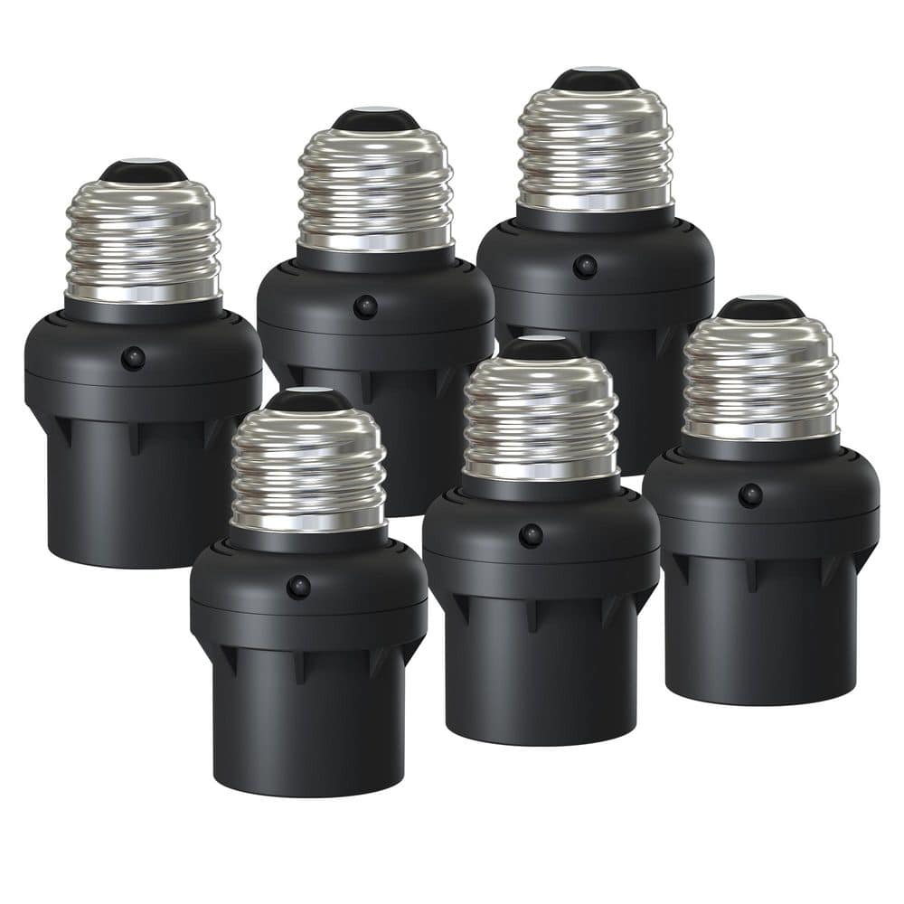 100-Watt Incandescent/CFL/LED/Halogen Screw-In Dusk to Dawn Light Control Sensor Socket, Black (6-Pack)