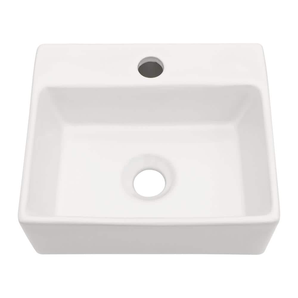 The ceramic white vessel sink is finely crafted with a smooth surface and detailed texture, adding a sense of high quality and sophistication to your bathroom. The small and delicate design of this bathroom sink will not take up too much space in the bathroom, meeting all kinds of daily washing needs, perfect for small bathroom, half bath, cloakroom, washroom, guest bath and powder room. Meanwhile, it has high hardness and abrasion resistance, not easy to be scratched or broken and can keep the original beauty and quality for a long time. Simple and streamlined, this wall-mounted vessel sink is designed to look like it's floating in your bathroom.. Color Family: White. Color/Finish: Ceramic White. Drain Finish: Not Applicable. Faucet Hole Spacing (in.): No Spacing - Single Hole. Features: Approved For Commercial Use,Predrilled Holes. Finish Family: Gloss. Included: Mounting Hardware. Material: Ceramic. Overflow location: None. Product Weight (lb.): 16.61 lb. Shape: Rectangular. Certifications and Listings: No Certifications or Listings. Bathroom Sink Front to Back Width (In.): 11.8. Bathroom Sink Left to Right Length (In.): 13.6. Bathroom Sink Top to Bottom Depth (in.): 4.8. Inner bowl front to back length (in.): 8.6. Inner bowl side to side width (in.): 10.6. Included: Mounting Hardware. Bathroom Sink Left to Right Length (In.): 13.6. Shape: Rectangular. Drain Finish: Not Applicable. Material: Ceramic. Bathroom Sink Front to Back Width (In.): 11.8. Finish Family: Gloss. Features: Approved For Commercial Use
