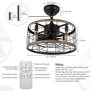 17.7 in. Indoor Black Ceiling Fan Caged Ceiling Fan with Lights and Remote Enclosed Ceiling Fan