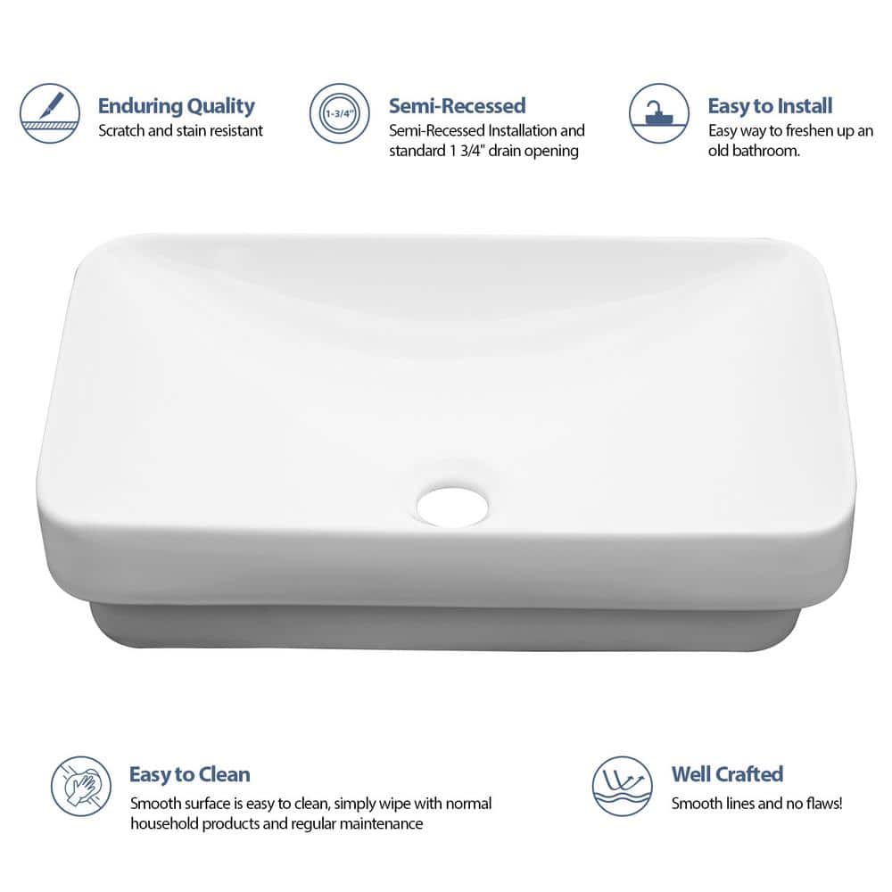 19 in. x 12 in. Above Counter Rectangular Ceramic White Semi Recessed Bathroom Vessel Sink