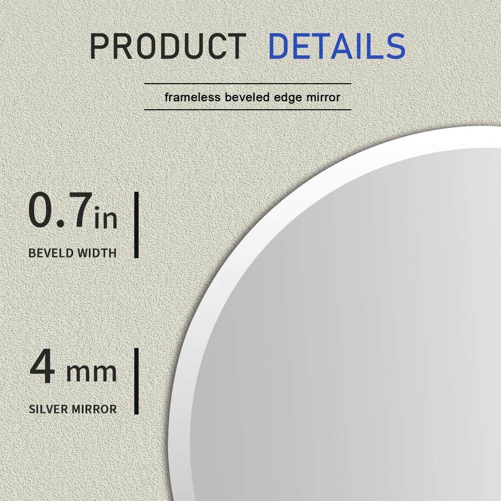 Mirror design Defined by its beveled design and oval silhouette, this sleek and glass design anchors any wall in eye-catching style. Add this wall mirror to your master suite powder room to complement a clean and cohesive arrangement. Size: Dia 24 in. suitable place The sliver mirror hangs both vertically and horizontally to suit bathroom, living room, entrance, hallway bedroom. Holiday gift our bathroom mirror is beautiful Ideal Choices for Birthday gift, Christmas gift, Mother's day gift, Valentine's day gift for Wife, Girlfriend, Lover, Mother, Grandmother, Daughter Sister, Aunt, Mom, Grandma, Nana. Easy to install first measure the distance between the centers of the two back buckles, next Draw the same distance on the wall with a ruler Mark the location of the mounting hardware where leave two holes with drill bit Install a screw into each hole until the head of the screw is approximately 0.2 in. off the wall at last Attach the buckles to the wall-mounted hardware. Color/Finish: Silver. Features: Beveled. Hardware Included: Yes. Mirror Orientation: Vertical / Horizontal. Mirror Type: Single. Mount Style: Floating. Mount Type: Wall. Product Weight (lb.): 7.3 lb. Shape: Round. Mirror Width: Medium (20-40 in.). Product Height (in.): 24 in. Product Width (in.): 24 in. Thickness (in.): 0.31 in. Mirror Width: Medium (20-40 in.). Mirror Orientation: Vertical / Horizontal. Mirror Type: Single. Features: Beveled. Mount Style: Floating. Shape: Round. Width (in.): 24 in.