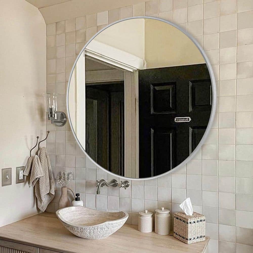 24 in. W x 24 in. H Silver Vanity Round Wall Mirror Aluminum Alloy Frame Bathroom Mirror