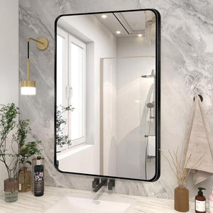 Brushed aluminum alloy exudes a hint of metallic luster under different light angles. The classic rounded corner design makes the whole mirror look harmonious and elegant. The 3-hole design on the back allows it to be hung horizontally or vertically. You can put it in the bathroom, console, staircase, and other places to increase the light and become the highlight of interior decoration.. Collection Name: Crane Lake. Color Family: Black. Features: Shatter Resistant. Frame Color/Finish: Black. Frame Material: Metal. Frame Type: Framed. Frame style: Modern. Mirror Type: Decorative Mirror. Orientation: Both. Product Weight (lb.): 14 lb. Style: Classic. Mirror Height: Medium (20-40 in.). Product Depth (in.): 1.45 in. Product Height (in.): 36 in. Product Width (in.): 24 in. Thickness (in.): 1.06 in. Width (in.) x Height (in.): 24 x 36. Mirror Height: Medium (20-40 in.). Frame Type: Framed. Frame Material: Metal. Features: Shatter Resistant. Orientation: Both. Width (in.) x Height (in.): 24 x 36. Mirror Type: Decorative Mirror