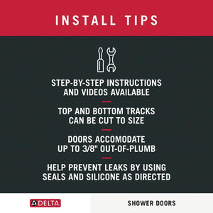 When it comes to your home, you want updates that add value, enjoyment, and last years. The Contemporary hinged door track is part of the Delta 1-2-3 custom shower door program. Simply choose your glass, track, and handles to build a unique, personalized shower enclosure. There are over 2,000 design combinations you can make!. DURABLE: Shower door tracks crafted from anodized aluminum for strength and corrosion resistance. DESIGN: No top track and slim sides creates a modern semi-frameless shower door look. FEATURES: A generous 9 inches of install adjustability, reversible install for right or left entry, and a secure magnetic closure. SMOOTH GLIDE: Center track guide comes standard for smoother, quieter slide. FINISH: Nickel is a warm, subdued matte silver color with low sheen. WHAT'S INCLUDED: Shower track assembly kit consists of pivot jamb (1), strike panel jamb (1), bottom track, mounting and assembly hardware components. NOT INCLUDED: Delta door handles and glass panels sold separately (roller brackets and installation instructions are included in the glass panel package). REVERSIBLE: Door can be installed to open left or right. ADJUSTABLE: Designed to accommodate out-of-plumb (uneven, not vertically level) conditions totaling 3/8 in.. COMPATIBLE PARTS: Use only with Delta sliding glass shower panels and handles (sold separately). DIY: Step-by-step instructions and mounting hardware included with shower door track assembly kit installation. MEASURE TWICE, CUT ONCE! Track must be cut according to measurements needed, double check both measurements before cutting incorrect measurements may prevent proper door installation. Glass panels and door handles are sold separately, click here to visit the Delta Shower Door Design Tool. Door Type: Sliding