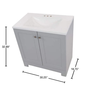 30.25 in. W x 18.75 in. D x 32.89 in. H Bath Vanity in Pearl Gray with White Cultured Marble Vanity Top