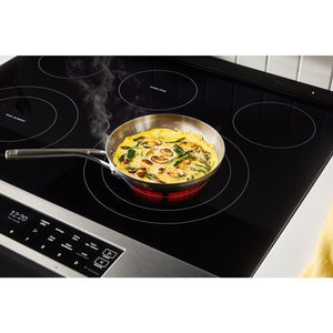 Get the ultimate in Air Cooking Technology and bring fresh options to family dinner with this 30-inch, High Speed Preheat 5.3 cu. ft. electric range. Clean with just water, not harsh cleaners, with WipeClean coating, the easiest to clean electric cooktop coating.* Get crispy and save time with no preheat air fry, and go from gooey to golden and bake evenly on multiple racks with Air Baking. Plus, you can stay on top of the latest cooking features and unlock new ones over time with Smart Feature Updates. **When compared with uncoated cooktop with same heating technology and similar wattages. Amperage (A): 40 A. Appliance Category: Range. Appliance Series: Not Applicable. Appliance Type: Electric Range. Capacity of Oven (cu. ft.): 5.3 cu ft. Cleaning Type: Self Cleaning. Color of Cooktop: Black. Color/Finish: Fingerprint Resistant Stainless Steel. Color/Finish Family: Stainless Steel. Commercial/Residential: Residential. Control Type: Manual. Controls Location: Front Control. Cooktop Features: Control Lockout,Standard Features Only. Cooktop Surface Type: Glass Top. Drawer Type: Lower Storage Drawer. Element No.1 Type: Induction. Element No.1 Wattage: 2400. Element No.2 Type: Induction. Element No.2 Wattage: 100. Element No.3 Type: Induction. Element No.3 Wattage: 1200. Element No.4 Type: Induction. Element No.4 Wattage: 1950. Element No.5 Type: Induction. Element No.5 Wattage: 1200. Fuel Type: Electric. Hardware Color/Finish: Fingerprint Resistant Stainless Steel. Hardware Color/Finish Family: Stainless Steel. Included: No Additional Items Included. Number of Elements: 5 element. Number of Oven Racks: 3. Number of Rack Positions: 5. Oven Cleaning Options: Self-Cleaning,Steam Clean. Oven Cooking Process: True Convection. Oven Features: Delay Bake/Delay Start,Sabbath Mode,Standard Features Only. Product Weight (lb.): 180 lb. Range Installation Type: Slide-In. Voltage (V): 240 V. Certifications and Listings: cUL Listed. Depth With Door(s) Open 90 Degrees (in.): 47.71 in. Element No.1 Size (in.): 6 in. Element No.2 Size (in.): 6 in. Element No.3 Size (in.): 9 in. Element No.4 Size (in.): 12 in. Element No.5 Size (in.): 6 in. Oven Interior Depth (in): 22.75. Oven Interior Height (in): 23.375. Oven Interior Width (in): 26.375. Product Depth (in.): 29.17 in. Product Height (in.): 38.07 in. Product Width (in.): 29.87 in. Range Size (Width): 30 in.. Range Size (Width): 30 in.. Range Installation Type: Slide-In. Capacity (cu. ft.): 5.3 cu ft.. Capacity (cu. ft.): 5.3 cu ft. Surface Type: Glass Top. Cleaning Type: Self Cleaning. No of Elements: 5 element. Oven Cooking Process: True Convection.
