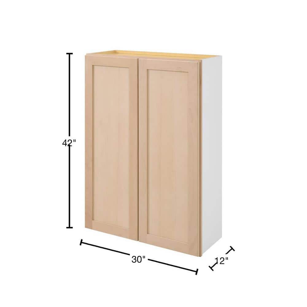 Revitalize your kitchen space with this 30 in. W x 12 in. D x 42 in. H Hampton Bay Ready to Assemble Wall Kitchen Cabinet with CLICKREADY technology that offers a versatile and customizable solution for your kitchen remodeling project. The unfinished design allows you to personalize the cabinet to perfectly match your existing decor, while the CLICKREADY technology ensures a hassle-free installation. Crafted with beech wood, this cabinet is built to last and provide years of reliable service.. Box Material: Other Material. Cabinet Construction: Framed. Cabinet Door Height (in.): 42. Cabinet Door Width (in.): 30. Cabinet Finish: Unfinished. Cabinet Material: Other Material. Cabinet Shade: Light. Cabinet Type: Wall. Color Family: Unfinished. Color/Finish: Unfinished. Door Handing: Bi-Parting. Door Material: Beech. Finished End: None. HUD Approved: Yes. Kitchen Cabinet Features: Paintable,Solid Wood. Number of Drawers: No Drawers. Number of Shelves: 1 Adjustable Shelf. Overlay Type: Full. Assembled Depth (in.): 12 in. Assembled Height (in.): 42 in. Assembled Width (in.): 30 in. Interior Cabinet Depth (in.): 24 in. Shelf Thickness (in.): 0.625 in. Cabinet Type: Wall. Assembled Width (in.): 30 in. Door Material: Beech. Assembled Height (in.): 42 in. Assembled Depth (in.): 12 in. Box Material: Other Material. Cabinet Finish: Unfinished. Cabinet Shade: Light