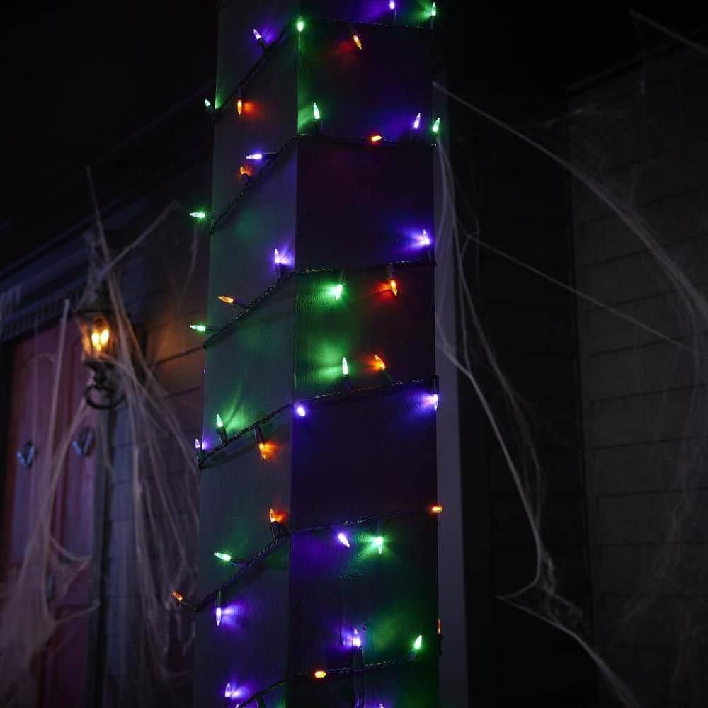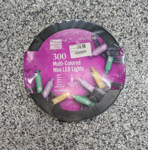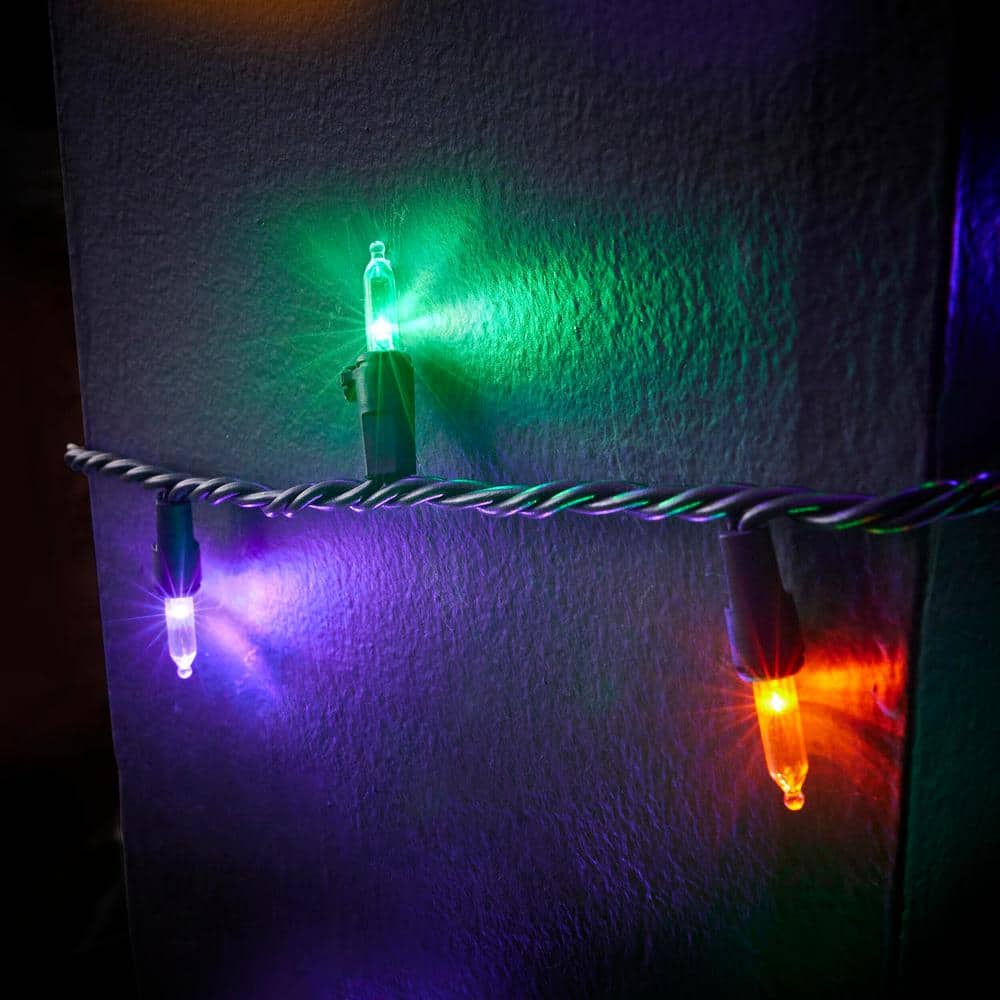 The Home Accents Holiday 300 Multi-Colored Mini LED Light string adds a touch of color to your Halloween decorations. The 300 mini multi-colored lights glow in the dark to summon the undead to your ghostly gathering, while the sturdy material endures the elements, allowing versatile placement on your porch or as part of your indoor or outdoor display. The 300 Multi-Colored Mini LED Light string measures just over 68 feet in length for ample coverage, giving trick-or-treaters a clue on where to score some treats.. Bulb Shape: Mini. Bulb Spacing (in.): 2.75. Bulb Texture: Smooth. Features: No Additional Features. Halloween Decor Theme: Innovation. Holiday Decor Product Type: Halloween Light. Indoor/Outdoor: Indoor,Outdoor. Light Bulb Color: Multi Color Lights. Light Count: 300. Light Functions: Steady. Light Temperature: Neutral. Light Type: LED. Maximum Number of Sets Connected: 15. Number of Batteries Required: 0. Power Type: Plug-in. Returnable: 90-Day. Wattage (W): 14.4 W. Wire Color: Black. Certifications and Listings: UL Certified. Lighted length (ft.): 68.5. Total length (ft.): 69. Wire Gauge: 22. Light Count: 300. Light Type: LED