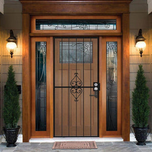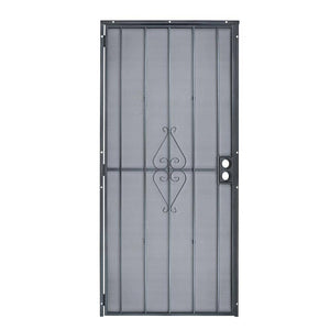 The Grisham 808 series Protector Security screen door has a 3/4 in. diameter welded steel frame, and a heavy duty expanded metal screen inlay for added security and ventilation. The Protector security door is designed be Surface Mounted for either left or right hinging preference, and has three tamper resistant hinges for additional protection from forced entry. The heavy-duty lock box will accommodate most locksets of your choice (sold separately). Beautifully finished with a superior powder coat paint process for resistance to weather and wear.. Color Family: Black. Color/Finish: Powder Coated Black. Door Configuration: Single Door. Door Handing: Universal/Reversible. Door Type: Security. Finish Type: Finished. Included: Hardware. Material: Steel. Mount Type: Surface Mount. Product Weight (lb.): 49 lb. Returnable: 90-Day. Actual Door Height (in.): 80 in. Actual Door Thickness (in.): 0.75. Actual Door Width (in.): 34 in. Door Height (in.): 80 in. Door Thickness (in.): 0.75 in. Door Width (in.): 34 in. Nominal Door Height (in.): 80 in. Nominal Door Thickness (in.): 1 in. Nominal Door Width (in.): 34 in. Material: Steel. Door Configuration: Single Door. Door Handing: Universal/Reversible. Finish Type: Finished. Door Type: Security