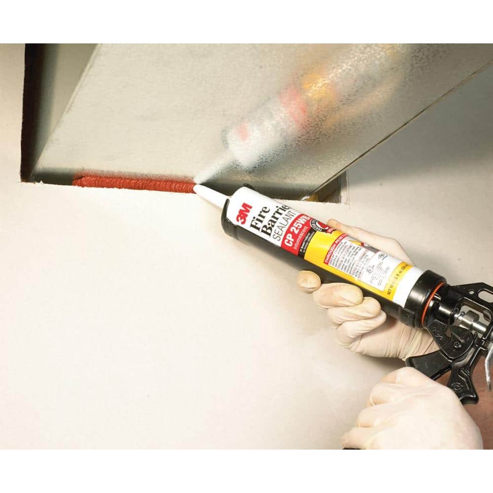 Use 3M 10.1 fl. oz. Fire-Barrier Caulk to guard against damage from fire, smoke and toxic gasses. This latex sealant withstands flames for up to 4 hours and expands when exposed to heat. Dries to red color, no mixing required.. Ready-to-use formula, no mixing required. Dries to red color, and is paintable. Ideal for sealing in fire-rated construction. Excellent adhesion. No-sag, non-halogen formula. Paintable. Protects against fire for up to 4 hours. Expands when exposed to heat to protect against smoke and toxic gasses. Dries to the touch in 15 minutes. Fire stop tested up to 4 hours in accordance with ASTM E 814 (UL 1479) and CAN/ULC S115. Fire resistance tested for static construction joint systems in accordance with ASTM E 1966 (UL 2079). Helps minimize sound transfer. Re-enterable/repairable. This product qualifies as an intumescent fire caulk. Need help choosing the right Caulk? Click Here for Home Depot's Buying Guide! . Click Here for the How to Caulk Project Guide . Caulk and Sealant Application: Specialty. Caulk and Sealant Type: Latex. Color/Finish: Red. Coverage (linear ft.): 29. Cure Time (hours): 72. Dry Color Family: Red. Dry to Touch (min.): 15 min. Features: Fire and High Heat Resistant. Indoor/Outdoor: Indoor. Interior/Exterior: Interior. Kit: No. Pack Size: 1. Paint Tool Product Type: Sealants. Professional Paint Supplies & Values: Pro Supplies. Sealant Form: Standard Tube. Certifications and Listings: UL Classified,UL Listed. Individual size (oz.): 10.1 oz