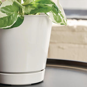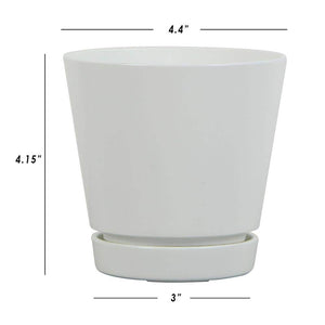 4.4 in. Piedmont Small White Plastic Planter (4.4 in. D x 4.2 in. H) with Drainage Hole and Attached Saucer