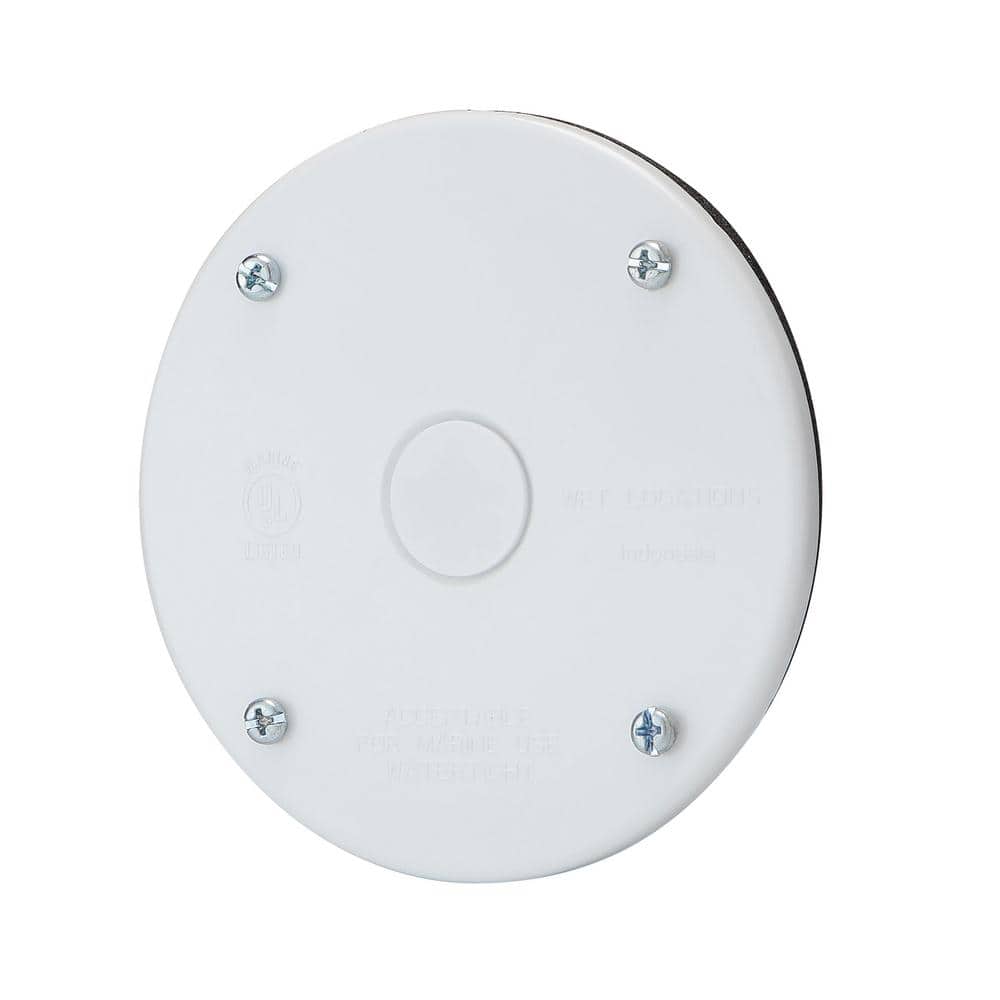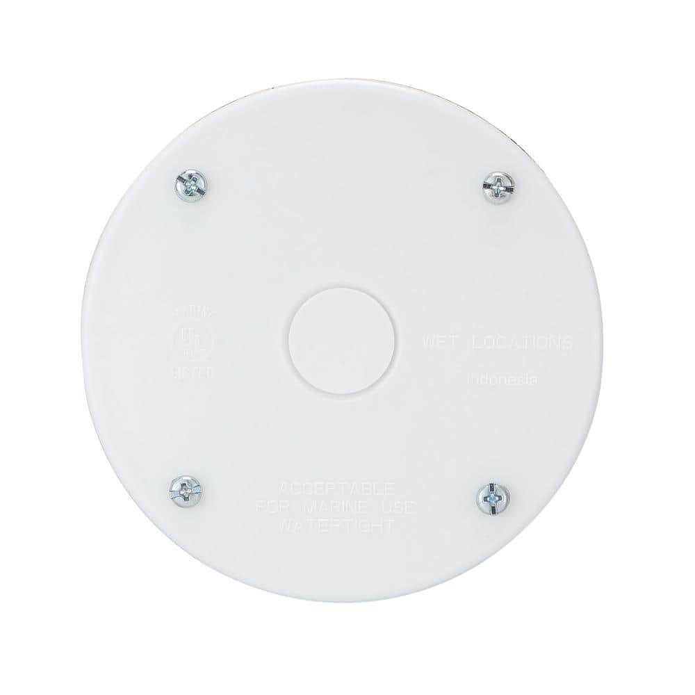 4 in. Round Blank Non-Metallic Weatherproof Cover, White