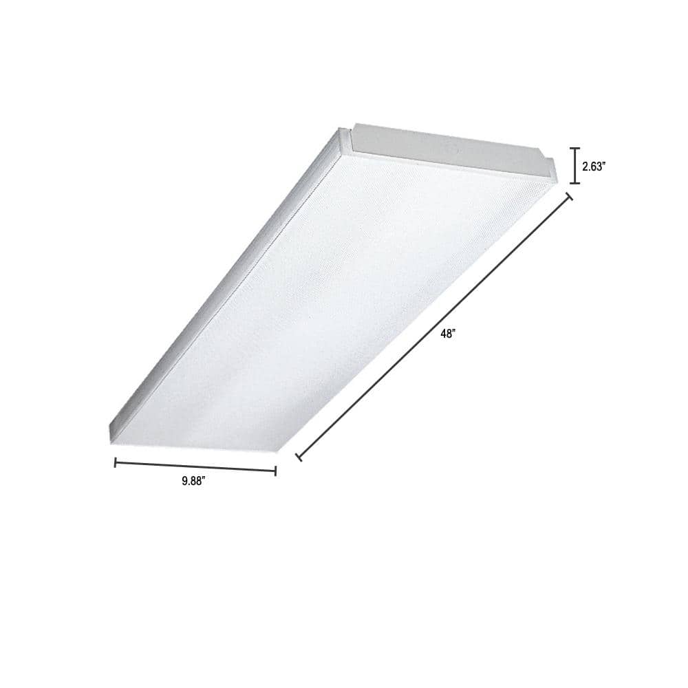 Stylish. Energy efficient. Built to last. When the job calls for commercial-grade fluorescent lighting, Metalux WS series should be top of mind. Its slim, easy-to-install design makes it a perfect choice for a range of applications, like schools, offices, and retail environments. The innovative wraparound design allows for smoother illumination that's more pleasing to the eye.. Color/Finish: White. Color/Finish Family: White. Compatible Bulb Type: Fluorescent. Damp/Wet Rating: Damp Rated (Covered Outdoor). Dimmable Capability: Non Dimmable. Features: No Additional Features. Included: No Additional Items Included. Light Bulb Base Code: Bi-Pin. Light Bulb Type Included: Fluorescent. Location Use: Garage,Office,Warehouse. Material: Steel. Max. Bulb Wattage (W): 122 W. Number of Bulbs Required: 4. Package Quantity: 1. Power Source: Hardwired. Product Length (ft): 4 ft. Product Weight (lb.): 13.25 lb. Product Width (ft): 1.28 ft. Recommended Light Bulb Shape Code: T8. Recommended Mounting Height (ft.): 10 ft. Returnable: 90-Day. Voltage (V): 120/277 V. Certifications and Listings: UL Listed,cUL Listed. Product Height (in): 2.625. Product Length (in): 48. Product Width (in): 15.38. Product Length (ft): 4 ft. Dimmable Capability: Non Dimmable. Package Quantity: 1. Light Bulb Type Included: Fluorescent. Damp/Wet Rating: Damp Rated (Covered Outdoor). Location Use: Garage. Compatible Bulb Type: Fluorescent. Location Use: Office