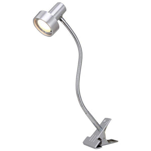 Full Range Dimming - The dimmable LED clip on lamp comes with a rotary dimmer switch for smooth and full range dimming from low end to high end to maintain your desired light level. No Adapter Required - The Clip on light is built-in the latest AC LED technology with approximately 20,000-hours lifespan. Just simply plug the LED lamp into your electrical outlet. Never to worry about the adapter. Flicker-Free/Anti-Glare - The LED lamp uses high quality LED chips which delivers non-flicker soft light (5-Watt/3000K) and remarkably reduces the glare. Great for reading, working and night light. 360 Flexible Arm - The clip on lamp features a flexible gooseneck. You can adjust the reading light to fit your desired position. The strong metal arm will stay at any angle without falling down. It is perfect to use the clip on light as a bedside lamp when reading in bed. 100% Metal Body - This clip on light/clamp on lamp is made of metal. Its aluminum lamp shade enables efficient heat radiation which helps extend LED lifespan. Large and sturdy metal clamp ensures you to firmly mount to most objects.. Actual Color Temperature (K): 3000. Base Color: Silver. Base Color Family: Silver. California Title 20 Compliant: No. Color Rendering Index (CRI): 80. Color Temperature: Soft White. Cord Length (in.): 72 in. Damp/Wet Rating: Dry Rated. Desk Lamp Type: Clip On Lights. Features: Adjustable Head Tilt,Dimmable,Height Adjustable. Fixture Color/Finish: Silver. Glass Shade Type: Frosted glass. Included: No Additional Items Included. Lamp Base Material: Metal. Lamp Design: No Design. Lamp Shape: Round. Lamp Type: Task & Reading. Light Bulb Type Included: Integrated LED. Light Setting: Dimmable (Full Range). Location Use: Bedroom,Cafe,Living Room,Office. Lumens: 400. Maximum Wattage (watts): 0. Number of Lights: 1 Light. Power Source: Hardwired. Product Weight (lb.): 1.52 lb. Remote Access: No Remote Access. Requires Hub?: No Hub Required. Returnable: 90-Day. Shade Color Family: Gray. Shade Fitter Type: Clip On. Shade Material: Metal. Shade Shape: Round. Switch Mechanism: Rotary. Volt (v): 120. Watt Equivalence: 5. Certifications and Listings: ETL Classified,ROHS,UL Listed. Product Depth (in.): 4.5 in. Product Height (in.): 16.5 in. Product Width (in.): 3 in. Shade Diameter (in.): 1.375 in. Lamp Type: Task & Reading. Features: Adjustable Head Tilt. Features: Height Adjustable. Features: Dimmable. Location Use: Office. Primary Switch Type: Dimmable (Full Range). Desk Lamp Type: Clip On Lights. Location Use: Bedroom