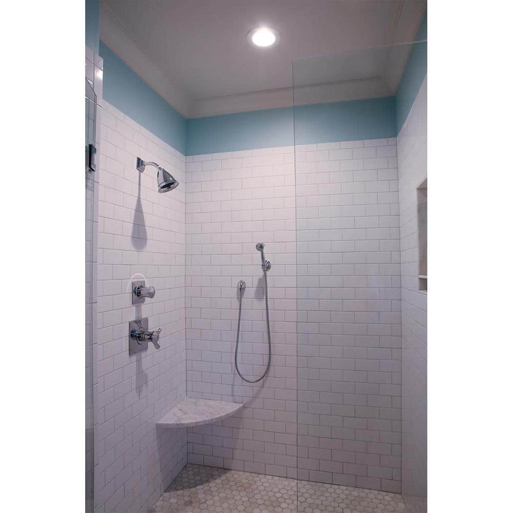 6 in. White Recessed Ceiling Light Trim with Albalite Glass Lens, Wet Rated Shower Light
