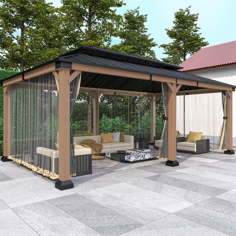 Beverly Hills 20 Ft. W x 12 Ft. D Solid Cedar Wood Patio Gazebo with Mesh Screens