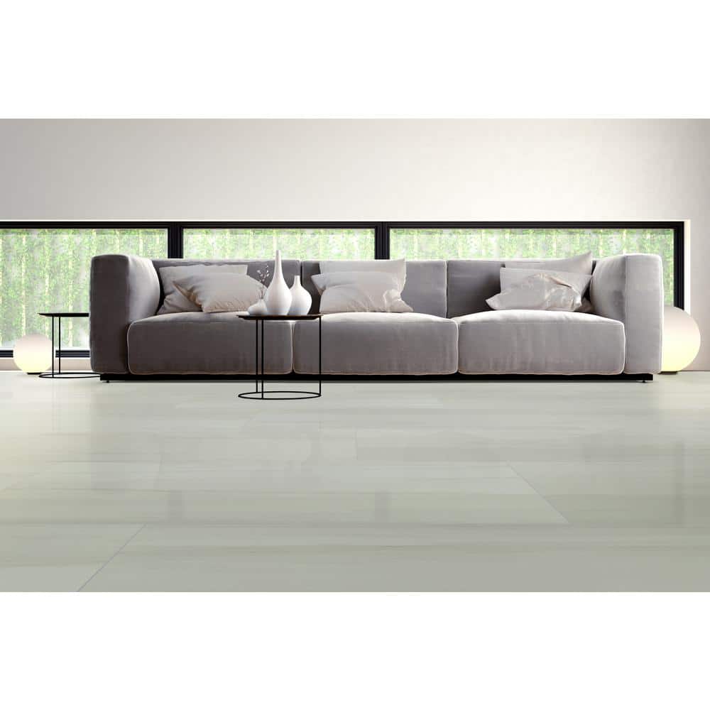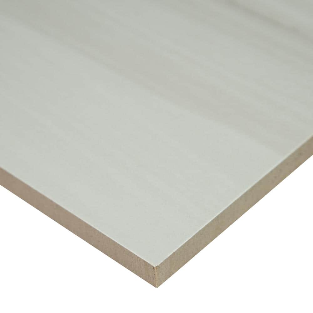 Incorporate a touch of style into your space with the MSI's Bianco Dolomite White Polished Porcelain Floor and Wall Tile. A perfect complement to any contemporary aesthetic, this elegant, white rectangular tile blends the look of natural stone with porcelain durability and a low-sheen matte surface to help brighten your decor. Suitable for medium-duty commercial or residential floors and walls with minimum maintenance, the tile incorporates a distinctive personal signature in a wide variety of designs. Use matching trim tile or a combination of field tile to achieve the design that best suits your space and preferences. 16 sq. ft., 2 pieces per case. Case weight is 60.56 lbs. Grade 1, first-quality porcelain tile for floor, wall and countertop use. 24 in. width x 48 in. length x 11.7 mm thick. Glazed smooth finish with a low sheen and slight variation in tone. P.E.I. Rating III is suitable for medium-duty residential and commercial floors including kitchens, halls, terraces and areas used more often with normal footwear and small amounts of dirt. Impervious tile has water absorption of less than 0.5% for indoor or some outdoor use and is frost proof. C.O.F. greater than 0.50 is recommended for standard residential applications and is marginally skid resistant. Completely frost resistant for indoor applications. Residential and commercial use. Don't forget your coordinating trim pieces, grout, backerboard, thinset, and installation tools. All online orders for this item ship via common carrier or parcel ground and may arrive in multiple boxes. It is recommended you purchase a minimum of 10% overage to account for design cuts and patterns. GREENGUARD indoor air quality certified and GREENGUARD children and schools certified product. Approximate Tile Size: 24x48. Tile Finish: Polished. Flooring Look: Stone Look. Application Location: Floor. Location: Bathroom. Location: Shower. Water Protection: Waterproof. Application Location: Wall.