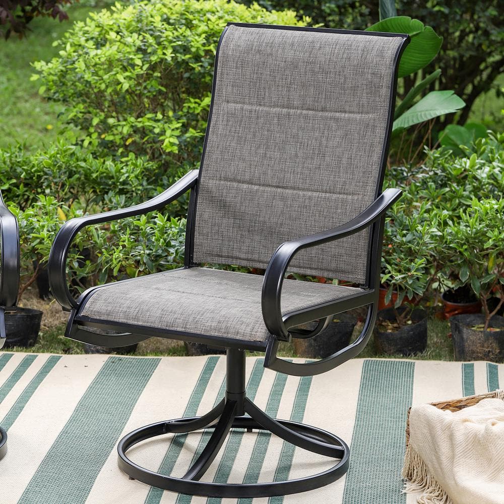 Black Swivel Padded Textilene Metal Outdoor Dining Chair with Curve Arms (2-Pack)