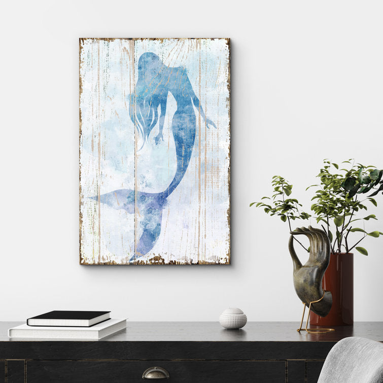 Idea4wall is a professional decorations manufacturer, specializing in high-quality canvas, mural, and hanging poster wall art. We use industrial-grade inks to ensure our products do not fade over time. Our high-quality canvas art is printed using industry-standard ink. Our style varieties offer numerous different options to fit any taste or complement any setting. Product Type: Print Framed: Yes Frame Structure: Wrapped Canvas Frame Structure: Floater Frame Frame Color: Natural Frame Color: White Frame Color: No Frame Frame Color: Black Primary Art Material: Canvas Additional Materials: Block-1910-m04 Total Number of Pieces Included: 1 Hanging Orientation: Portrait Overall Shape: Rectangle Subject: Bath & Laundry; Fantasy & Sci-Fi Art Technique: Graphic Art Art Production Method: Machine Made Title: Mermaid Swimming on Watercolor Wood Effect Panels. Mat Included: No Color: Blue