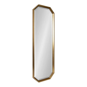 The glamorous, modern style of the sophisticated Calter wall mirror offers your home a practical accent for any room. Inspired by modern, geometric forms, the Calter mirror has minimal lines and a lovely octagon shape. Constructed with a resilient, light 8-plastic and mirrored glass, the Calter surface and frame each have a beveled edge to spread more light throughout the area. Adding a mirror to your wall expands your space by reflecting light, creating a more dimensional, open concept room. Hang this practical, geometric accent in any modern or glamorous living room, bedroom, entryway, bathroom, closet or dining room. The overall dimensions of this mirror are 17.5 in. wide x 1.5 in. deep x 49.5 in. tall, showcasing a robust, full-length mirror for checking you appearance, tying your tie or doing your makeup. Hang the Calter on its own for a bold focal point or in multiples to create a grand wall display. The metal D-ring hangers attached to the back of the frame allow you to hang it both vertically or horizontally, depending on your unique decorative aesthetic.. Collection Name: None. Features: Beveled Glass. Frame Color/Finish: Gold. Frame Material: Glass. Frame Type: Framed. Frame style: Modern. Hub Required: No hub connection available. Mirror Type: Decorative Mirror. Orientation: Both. Product Weight (lb.): 11 lb. Style: Glam,Modern. Mirror Height: Large (40-60 in.). Product Depth (in.): 1.25 in. Product Height (in.): 48.38 in. Product Width (in.): 17.38 in. Thickness (in.): 1.5 in. Width (in.) x Height (in.): 17.38 x 48.38. Mirror Height: Large (40-60 in.). Frame Type: Framed. Features: Beveled Glass. Orientation: Both. Width (in.) x Height (in.): 17.38 x 48.38. Frame Material: Glass. Mirror Type: Decorative Mirror. Style: Modern