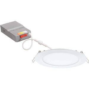 The Wafer LED Downlights with Switchable White technology provides high-quality light output and efficiency and features a switch for easy color temperature adjustment, while eliminating the need for recessed housings. Great for residential and light commercial applications including multi-family, hotels, assisted living, dormitories and other multi-level construction. The Wafer LED Downlights are wet rated and airtight: perfect for showers, bathrooms, and outdoor soffits.. Actual Color Temperature (K): 2700,3000,3500,4000,5000. Color Rendering Index (CRI): 90. Color Temperature: Selectable White. Color/Finish: White. Color/Finish Family: White. Commercial/Residential: Commercial,Residential. Damp/Wet Rating: Wet Rated. Dimmable Capability: Dimmable. Features: No Additional Features. IC Rating: IC Rated. Included: Stencil,Wiring Connectors. Indoor/Outdoor: Indoor. Light Bulb Type Included: Integrated LED. Lumens: 970. Material: Aluminum. New Construction or Remodel: New Construction. Pack Size: 1. Product Weight (lb.): 1.6 lb. Trim Style: Ultra Thin. Voltage (V): 120 V. Watt Equivalence: 100. Wattage (W): 13 W. Certifications and Listings: CSA Certified. Nominal Size (in.): 6 in. Product Diameter (in.): 6.7 in. Product Height (in.): 1.2 in. Nominal Size (in.): 6 in. Pack Size: 1. Trim Style: Ultra Thin. New Construction or Remodel: New Construction. Dimmable Capability: Dimmable. Indoor/Outdoor: Indoor. Light Bulb Type Included: Integrated LED. Wattage (watts): 13 W