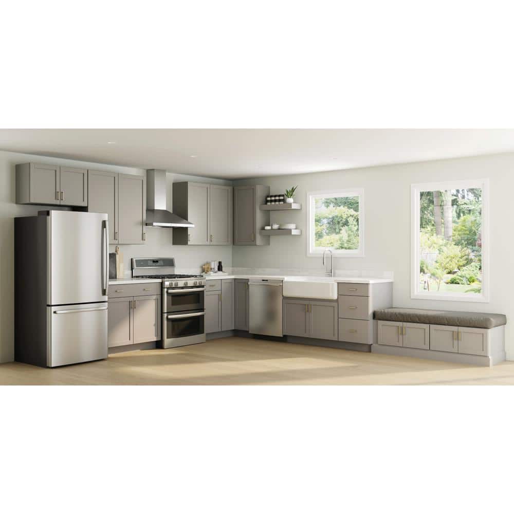 Our Hampton Bay Sterling Gray 12 in. x 30 in. x 12 in. Wall Cabinet, with its classic shaker design, provides you with the latest on-trend style and color choices to complete your space. The cabinet is preassembled for hassle-free installation. Hampton Bay cabinets are found exclusively at The Home Depot. Box Material: Furniture Board. Cabinet Construction: Framed. Cabinet Door Height (in.): 11.65. Cabinet Door Width (in.): 11.625. Cabinet Finish: Laminate. Cabinet Material: Furniture Board. Cabinet Shade: Light. Cabinet Type: Wall. Color Family: Gray. Color/Finish: Sterling Gray. Door Handing: Reversible. Door Material: MDF. Finished End: Right and Left. HUD Approved: No. Kitchen Cabinet Features: No Additional Features. Number of Drawers: No Drawers. Number of Shelves: 2 Adjustable Shelves. Overlay Type: Full. Assembled Depth (in.): 12 in. Assembled Height (in.): 30 in. Assembled Width (in.): 12 in. Interior Cabinet Depth (in.): 11.22 in. Shelf Thickness (in.): 0.75 in. Assembled Width (in.): 12 in. Door Material: MDF. Cabinet Type: Wall. Assembled Depth (in.): 12 in. Assembled Height (in.): 30 in. Cabinet Shade: Light. Box Material: Furniture Board. Cabinet Material: Furniture Board.