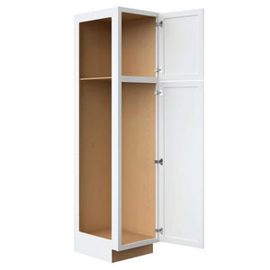 Our Hampton Bay Shaker Assembled 18 in. x 90 in. x 24 in. Pantry Kitchen Cabinet in Polar White provides ample storage and organization for all of your pantry items. The cabinet is preassembled for hassle-free installation. Box Material: Furniture Board. Cabinet Construction: Framed. Cabinet Door Height (in.): 17.65. Cabinet Door Width (in.): 17.625. Cabinet Finish: Laminate. Cabinet Material: Furniture Board. Cabinet Shade: Light. Cabinet Type: Pantry. Color Family: White. Color/Finish: Polar White. Door Handing: Reversible. Door Material: MDF. Finished End: Right and Left. HUD Approved: No. Kitchen Cabinet Features: No Additional Features. Number of Drawers: No Drawers. Number of Shelves: 4 Adjustable Shelves. Overlay Type: Full. Certifications and Listings: CARB Compliant. Assembled Depth (in.): 24 in. Assembled Height (in.): 90 in. Assembled Width (in.): 18 in. Interior Cabinet Depth (in.): 23.5 in. Shelf Thickness (in.): 0.75 in. Assembled Width (in.): 18 in. Door Material: MDF. Cabinet Type: Pantry. Assembled Depth (in.): 24 in. Assembled Height (in.): 90 in. Cabinet Shade: Light. Box Material: Furniture Board. Cabinet Material: Furniture Board.
