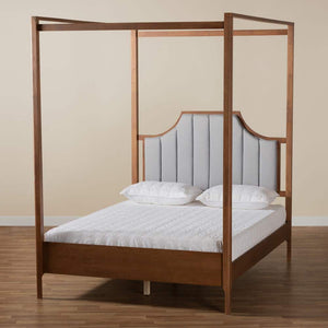 Befit your bedroom to foster a wondrous atmosphere with the incredible Dakota canopy bed. Made in Malaysia, this classic piece consists of a solid wood frame padded with plush foam and upholstered in soothing fabric. The headboard features a crisp channel tufted design while scalloped corners accentuate the clean outline of the frame. The Dakota requires assembly and utilizes wood slats for mattress support, eliminating the need for a box spring. Privacy curtains transform the bed into a personal haven, making the Dakota canopy bed a timeless addition to any bedroom.. Assembly Required: Assembly Required. Bed Frame Material: Wood. Box Spring Required: Box Spring Not Required. Color Family: Brown. Color/Finish: Light Grey/Ash Walnut. Finish Family: Walnut. Furniture Features: No Additional Features. Headboard Mount Type: Bed Frame Mounted. Interior Furniture Type: Canopy Bed. Material: Wood. Number of Pieces: 1. Product Weight (lb.): 134.5 lb. Returnable: 30-Day. Size: Queen. Total Weight Capacity (lb.): 500 lb. Upholstery Material: Fabric. Platform Height (in.): 12.4 in. Product Depth (in.): 85.4 in. Product Height (in.): 87.3 in. Product Width (in.): 63 in. Size: Queen. Bed Frame Material: Wood. Total Weight Capacity (lb.): 500 lb. Box Spring Required: Box Spring Not Required. Upholstery Material: Fabric. Headboard Mount Type: Bed Frame Mounted. Finish Family: Walnut