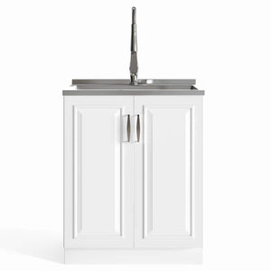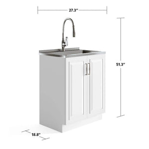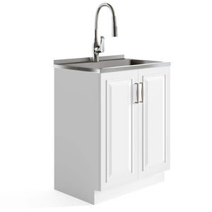 Darwin Contemporary 28 in. Deluxe Laundry Cabinet with Pull-out Faucet and Stainless Steel Sink in Pure White