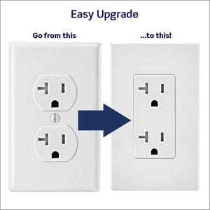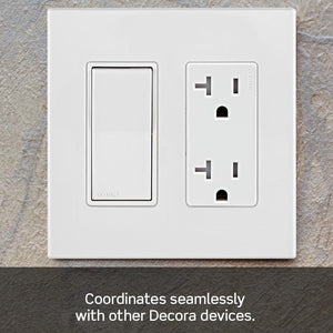 Perfect for high-power appliances, the Decora Lever Edge 20 Amp Outlet is ideal for areas such as the kitchen, laundry room, garage, and bathroom. Lever Edge devices combine the traditional appearance and superior performance of Decora devices with a faster, easier-to-install, and safer design. Innovative features such as color-coded lever terminals (including the ground terminal) for efficient wiring, a larger strap with a unique tongue and groove alignment for quicker trim out on multi-gang installations, and no exposed metal parts for safety make Lever Edge ideal for new home construction, MDU projects, and retrofits. Installers will experience a unique and practical installation process. The color-coded levers help rapidly identify the correct terminal for wiring, including a first-of-its-kind lever terminal for the ground wire. The lever termination feature ensures a positive connection has been made. This patented design also has a snap feature with an audible 'click' so installers can be confident with every termination. The future of wiring is here: push, click, and you're done!. Amperage (A): 20 A. Color Family: White. Color/Finish: White. Configuration: Standard. Durability: Tamper Resistant. Electrical Features: No Additional Features. Grounding: Ungrounded. Indoor/Outdoor: Indoor. Mounting Type: Screw-In. NEMA Configuration: Non-Nema. Number of Receptacles: 2. Outlet Configuration: Duplex. Outlet Location: Wall. Outlet Material: Nylon. Outlet Type: Not Protected. Package Quantity: 1. Rating: Tamper Resistant. Receptacle Configuration: 5-20. Returnable: Voltage (V): 125 V. Wall Plate Included: Outlet w/o Wall Plate. Wire Connection Location: Side. Wire Connection Type: Screw Terminal. Certifications and Listings: CSA Listed,UL Listed. Package Quantity: 1. Voltage (V): 125 V. Configuration: Standard. Grounding: Ungrounded. Number of Receptacles: 2. Durability: Tamper Resistant. Indoor/Outdoor: Indoor. Outlet Material: Nylon