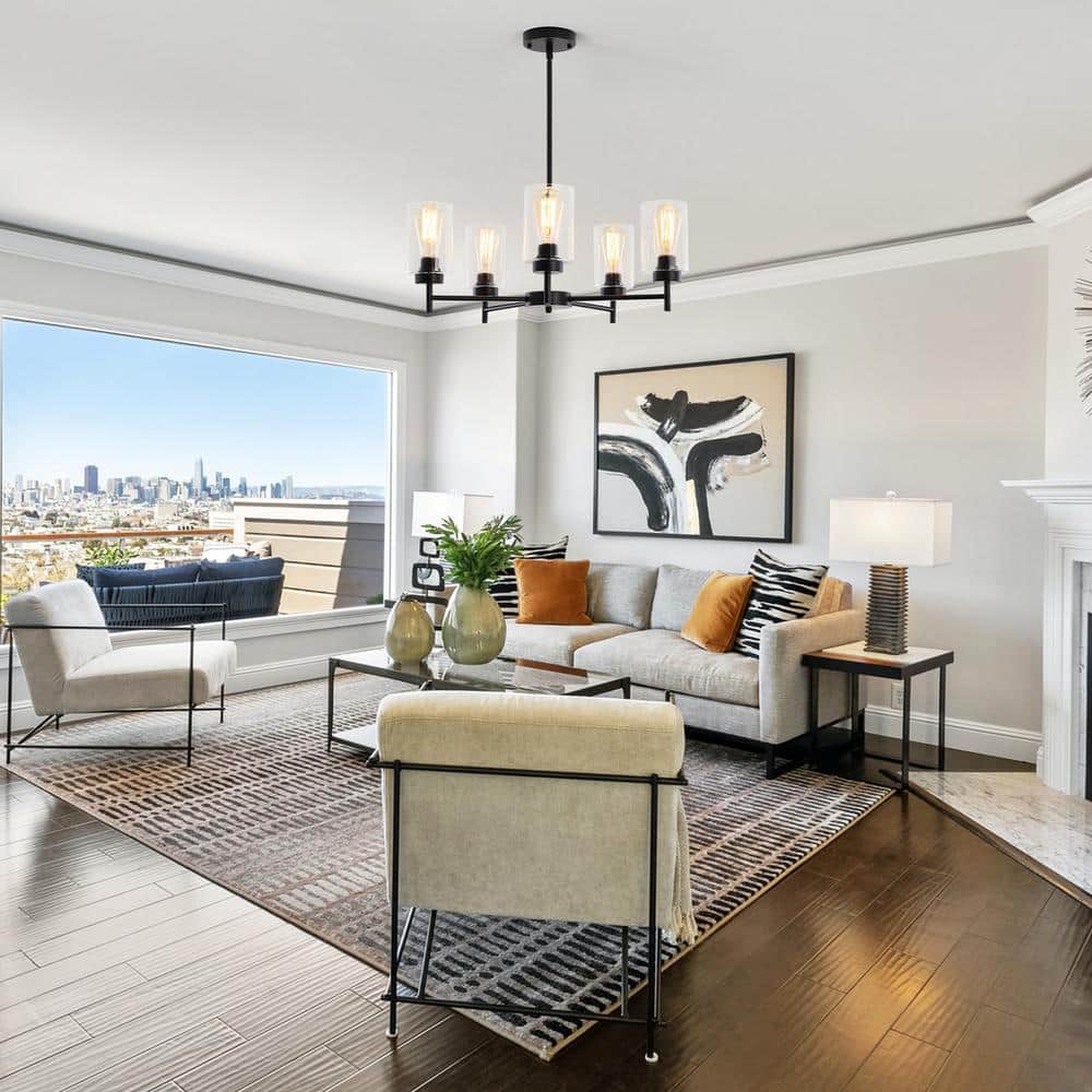 Delmo 5-Light Black Dimmable Rustic Chandelier with Cylinder Glass Shade Kitchen Island Pendant Light for Living Room