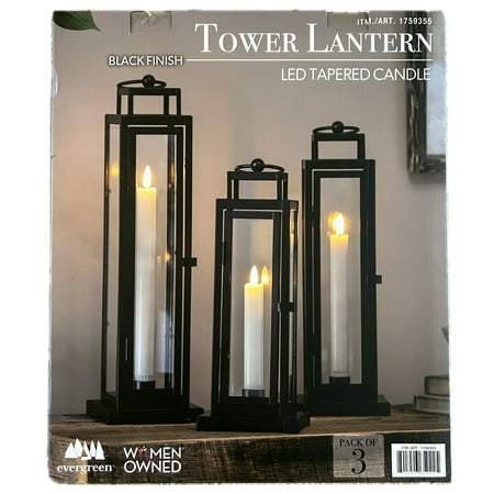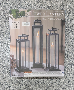 Evergreen LED Tapered Candle Tower Lantern, 3 Count (Black Finish)