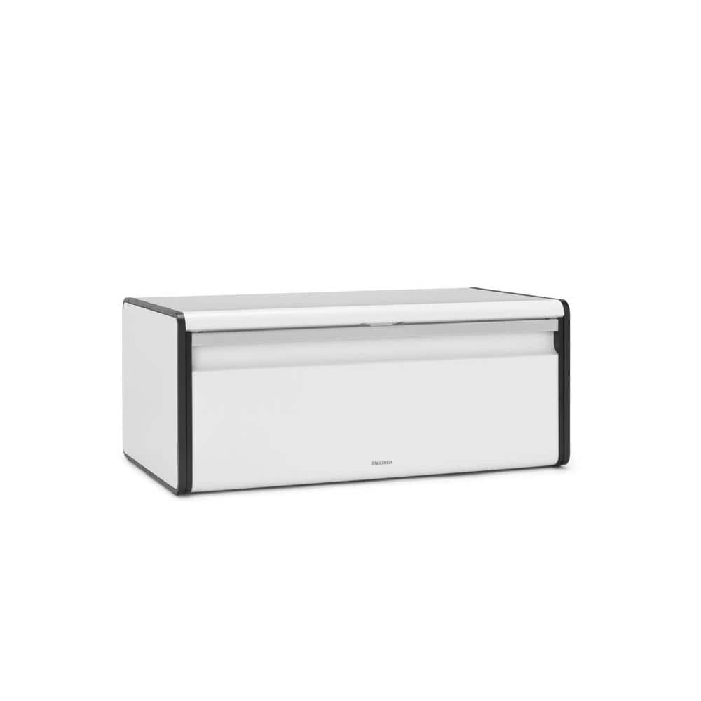 A bread box that doesn't take up extra space in your kitchen. Our Fall Front Bread Box has a flat top, so you can store canisters etc. on top of it. Plus it keeps all your bread fresh because of its good closure: the Fall Front lid is fitted with a magnetic seal.. Color/Finish: White. Features: No Additional Features. Included: No Additional Items Included. Kitchen Product Type: Bread Boxes. Material: Steel. Number of Pieces: 1. Product Depth (in.): 9.8 in. Product Height (in.): 7.4 in. Product Width (in.): 18.3 in. Material: Steel. Kitchen Product Type: Bread Boxes