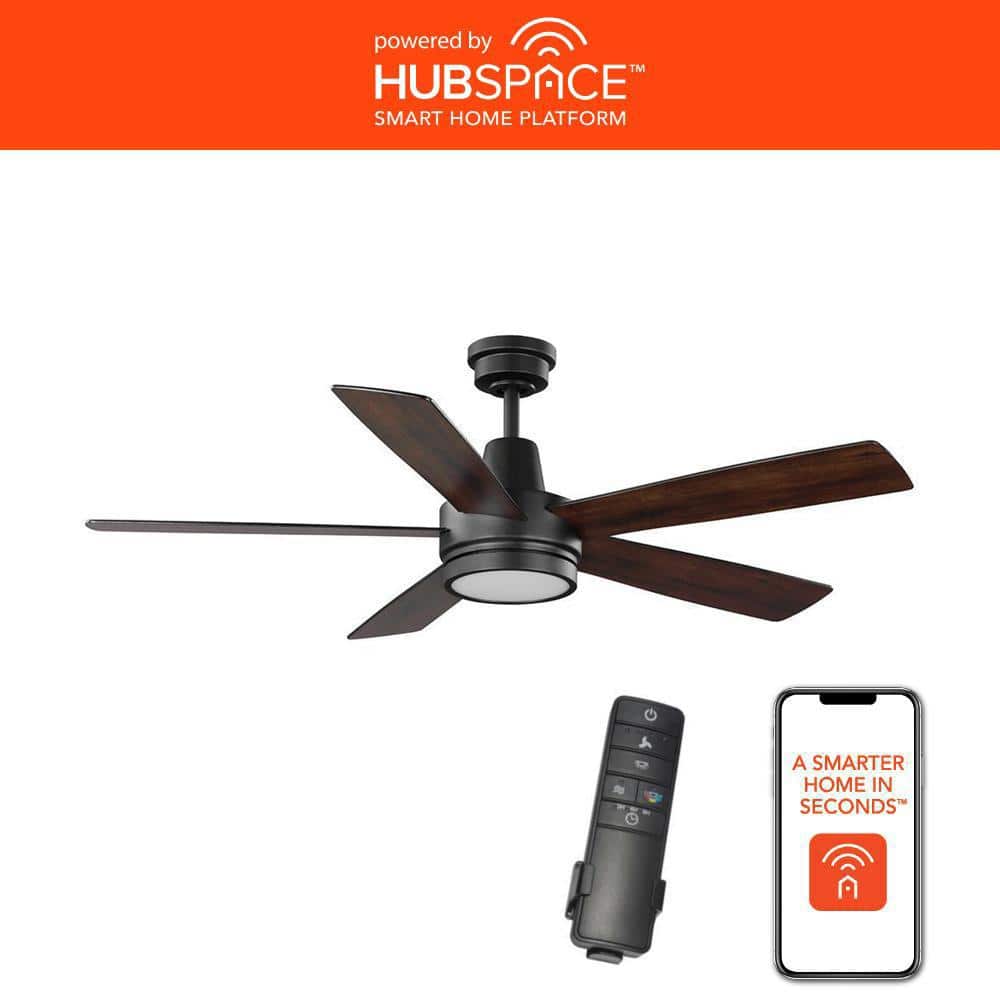 Fanelee 54 in. White Color Changing LED Matte Black Smart Ceiling Fan with Light Kit and Remote Powered by Hubspace