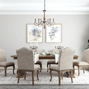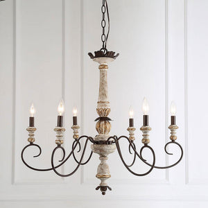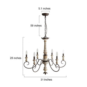 Brimming with rustic countryside flair, the 6-Light Farmhouse Rustic Chandelier Bronze Classic French Country Antique Wood Candlestick Chandelier features soft curves, leaf-like motifs, and candelabra design sharing the elements of the Rococo style. While handmade wood center column, distressed wood, and rust bronze metal finish give it a rich texture, well-worn appearance, and historical sense. Each branch-like arms with a beautiful curve support a classic candle style holder and the delicate exterior adds elegance and grace to your home. 40-Watt E12 base candelabra bulbs (Not Included) are highly recommended to complete the vintage look. The rustic hanging ceiling light is perfect to install in a dining room, entry, hallway, foyer, etc. The six-light chandelier will cast a warm glow and create a relaxing ambiance in your space.. Chandelier/Pendant Design: Branch,Candle. Decorative Accents: No Decorative Accents. Dimmable Capability: Dimmable. Features: Adjustable Hanging Length,Assembly Required,Sloped Ceiling Adaptable. Fixture Color Family: Bronze. Fixture Color/Finish: Bronze. Fixture Material: Wood. Fixture Shape: Circle. Included: Hardware Included. Light Bulb Base Code: E12. Light Bulb Type Included: No Bulb(s) Included. Location Use: Bedroom,Dining Room,Foyer,Kitchen Island,Living Room,Nursery. Max. Bulb Wattage (W): 40 W. Minimum Hanging Length (in.): 32 in. Number of Lights: 6. Product Weight (lb.): 7.7 lb. Recommended Light Bulb Shape: Tubular. Style: Classic,Cottage. Volt (v): 120. Certifications and Listings: UL Listed. Fixture Width (in.): 31 in. Maximum Hanging Length (in.): 88 in. Mounting Plate Width (in.): 5.1 in. Product Depth (in.): 31 in. Product Length (in): 28 in. Number of Lights: 6. Fixture Shape: Circle. Style: Classic. Style: Cottage. Features: Adjustable Hanging Length. Fixture Material: Wood. Features: Sloped Ceiling Adaptable. Location Use: Dining Room