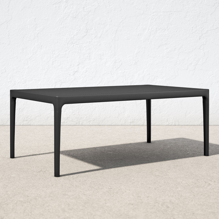 Fresh + airy. This coffee table pairs a streamlined silhouette with perforations designed to keep your outdoor snacking experience puddle-free. Built from weather-resistant resin, it stands up to sun, storms, and spills. Arrives fully assembled iced tea + sunglasses sold separately. Product Type: Coffee Table Frame Material: Plastic Top Material: Plastic / Acrylic Table Top Shape: Rectangular Durability: Weather Resistant; Water Resistant; UV Resistant; Rust Resistant Imported: Yes