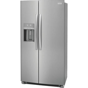 This Frigidaire Gallery 36 in. Side-by-side refrigerator offers our advanced CrispSeal Plus Crisper. This crisper keeps produce fresh with a seal that blocks out dry air, plus an added filter reduces the gas that causes produce to ripen faster. It also features our EvenTemp Cooling System which keeps your food fresh by reacting quickly to temperature fluctuations and constantly circulates cold air throughout the fresh food and freezer compartments, ensuring a consistent cool from top to bottom.. Convenient dedicated Deli Drawer to easily organize favorites. Built in air filter that captures and keeps odors away. Keep produce fresh longer in our advanced crispers. CrispSeal Plus crisper - help prevent produce from spoiling: advanced CrispSeal Plus keeps produce fresh with a seal that blocks out dry air, plus an added filter reduces the gas that causes produce to ripen faster. EvenTemp cooling system - keep your food fresh and reduce freezer burn with our variable speed compressor that reacts quickly to temperature fluctuations and constantly circulates cold air throughout the fresh food and freezer compartments. Spacewise organization system - find a place for everything with our flexible organization system, including three removable glass shelves, adjustable gallon door bin, and a slim design ice maker that holds 9 lbs. of ice without taking up valuable shelf space. Smudge-proof stainless steel - resists fingerprints and cleans easily. Deli drawer - keep sandwich meats and cheeses organized and easy to reach in a convenient dedicated drawer. ENERGY STAR certified - save money and maximize energy efficiency with ENERGY STAR certified appliances. Multi-level bright led lighting - keep safe, great tasting water flowing, our filter reduces up to 9Find fresh foods quickly with our bright LED lighting. PurePour water filter - keep safe, great tasting water flowing, our filter reduces up to 99% of contaminants, cuts back on plastic and saves the cost of bottled water, NSF and WQA certified. PureAir Ultra II air filter - our air filter performs better than baking soda, capturing undesirable smells to keep your fridge fresh for longer. Automatic de-frost. Door ajar alarm. Compatible water filter model: FPPWFU01. Add .25-in + depth of handle if door will open against a wall. Compatible with water filter model : HDFPPWFU01 . Compatible with air filter model : PAULTRA2 . Click here to shop all Frigidaire appliances . Click here for more information on Electronic Recycling Programs . Appliance Category: Refrigerator. Appliance Series: Frigidaire Gallery. Appliance Type: Side-by-Side Refrigerator. Built-In and Standard Type: Side-by-Side. Color - Appliance Cabinet: Stainless Look. Color - Door Handle(s): Stainless Steel. Color/Finish: Smudge-Proof Stainless Steel. Color/Finish Family: Stainless Steel. Defrost Type: Auto / Cycle. Dispenser Location: External Ice Dispenser,External Water Dispenser. Door Finish: Smooth. Energy Consumption (kWh/year): 647. Energy Efficiency Tier Rating: Tier I. Freezer Capacity (cu. ft.): 9 cu ft. Freezer Door Type: Swing Door. Freezer Features: In-door Storage,LED Light Type. Freezer Type: Side Door Freezer. General Features: Dispenser Light,Door Alarm,Interior Light,LED Light Type,Sabbath Mode,Smudge-Proof. Handle Type: Bar Handle. Hardware Color/Finish: Gray. Hardware Color/Finish Family: Stainless Steel. Ice Maker Features: Control Lockout,Filtered Ice,Removable Basket. Ice/Water Dispenser: Both. Indoor/Outdoor: Indoor. Installation Depth: Standard Depth. Installation Type: Free Standing. Number of Doors: 2 Door. Number of Freezer Baskets/Bins: 2 Baskets/Bins. Number of Freezer Shelves: 3 Shelves. Number of Refrigerator Shelves: 3 Shelves. Operational Features: Fresh Air Filter,Humidity Control,Sabbath Mode. Overall Product Height (in.): 70 in. Product Weight (lb.): 278.35 lb. Refrigeration Dispenser Features: Crushed Ice,Cubed Ice,Filtration Replacement Indicator Light,Water Dispenser. Refrigerator Capacity (cu. ft.): 16.6 cu ft. Shelf Material - Freezer: Glass. Shelf Material - Refrigerator: Glass. Storage Features: Adjustable Shelves/Racks,Deli Drawer,Gallon Door Storage,Spill Proof Shelves. Temperature Control Type: Internal Electric. Total Capacity (cu. ft.): 25.6 cu ft. Water Filter Replacement Model#: FPPWFU01. Certifications and Listings: ADA Compliant,Energy Star,cUL Listed. Depth (Excluding Handles) (in.): 33.375 in. Depth (Including Handles) (in.): 35.875 in. Depth (Less Door) (in.): 28.75 in. Depth With Door Open 90 Degrees (in.): 50. Height to Top of Door Hinge (in.): 69.875 in. Height to Top of Refrigerator Case (in.): 68.625 in. Height to Top of Refrigerator Door (in.): 69.875 in. Product Depth (in.): 33.375 in. Product Height (in.): 69.875 in. Product Width (in.): 35.875 in. Refrigerator Width (in.): 36.125 in