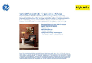 GE Classic 60 -Watt EQ A19 Bright white Medium base (E-26) Dimmable LED General purpose Light Bulb 8 -Pack