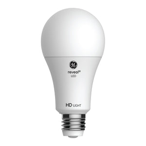 GE High Definition bulbs are an improved, energy-saving LED that enhance the appearance of colors. Experience the difference with bolder colors and enhanced contrast vs. standard GE LED bulbs. Reveal is GE's best light, filtering dull yellow light to give you the incredible color contrast plus whiter whites for exceptional clarity. Reveal illuminates your home with clean, beautiful light. Use reveal pure, clean light in kitchens, bathrooms as well as craft and hobby spaces where clarity matters most. Use this bulb in fixtures rated for 3-way bulbs. - 150 Watt replacement using only 15 Watts (1600 lumens) - Rated to last 13 years based on 3 hours per day use - Saves 222 dollars on energy costs per bulb vs 150-Watt incandescent over the bulb's life - Non-dimmable - Pure, clean high definition plus light with 2850 kelvin color temperature - 1 LED bulb per package - A21 shape and size with frosted finish - Medium base (E26) - General purpose bulbs for table lamps with 3-way sockets - Bulb Finish: Frosted - Color Rendering Index (CRI): 90 - Color Temperature (Kelvins): 2850 - Light Color: Color-enhancing - Series Name: Reveal HD - Type: General purpose - Bulb Diameter (Inches): 5.2362 - Length (Inches): 5 - 3 Way: Yes - Battery Back-Up: No - Blacklight: No - Built-In Speakers: No - Bulb Material: Plastic - Bulb Shape: A-style - Bulb Shape Code: A21 - Bulb Type: LED - Dimmable: No - Dusk-to-Dawn Sensor: No - Edison: No - Enclosed Fixture Rated: No - Energy Efficient: Yes - Grade: Residential - Hub Required: No - Light Bulb Base Type: Medium base (E-26) - Lowe's Exclusive: No - Lumens: 1600.0 - Motion Sensor(s) Included: No - Package Quantity: 1 - Package Type: Individual pack - Plug-In Type: Screw-in - Primary Usage: Light fixtures - Rapid Start: No - Rated Life (Hours): 15000.0 - Remote Control Included: No - Scheduling Ability: No - Shatter Resistant: No - Tube Length (Inches): 0 - Usage Rating: Damp rated - Use Location: Indoor - Vintage: No - Voice Controlled: No - Volts: 120 - Wattage: 15 - Wattage Equivalent: 150 - App Compatibility: No - Bluetooth Compatibility: No - Smart Compatible: No - Wi-Fi Compatibility: No - Works with Amazon Alexa: No - Works with Android: No - Works with Apple HomeKit: No - Works with iOS: No - Works with SmartThings: No - Works with the Google Assistant: No - CA Residents: Prop 65 Warning(s): No - CEC Compliant (CA): No - Encircled E Required on Product or Pkg: No - ENERGY STAR Certified: No - Safety Listing: cULus safety listing - UNSPSC: 39101600