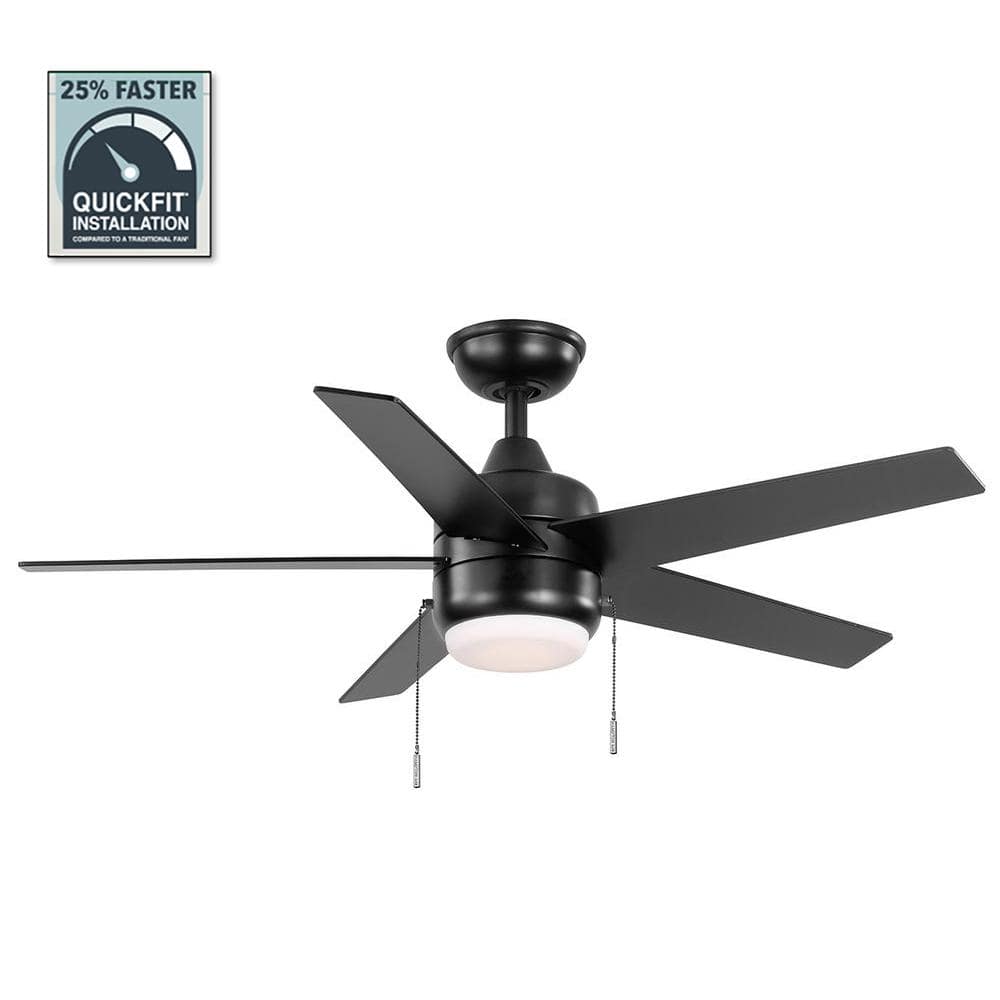 Hampton Bay Mena 44 in. LED Indoor/Outdoor Matte Black Ceiling Fan with Light Kit and Reversible Blades Included