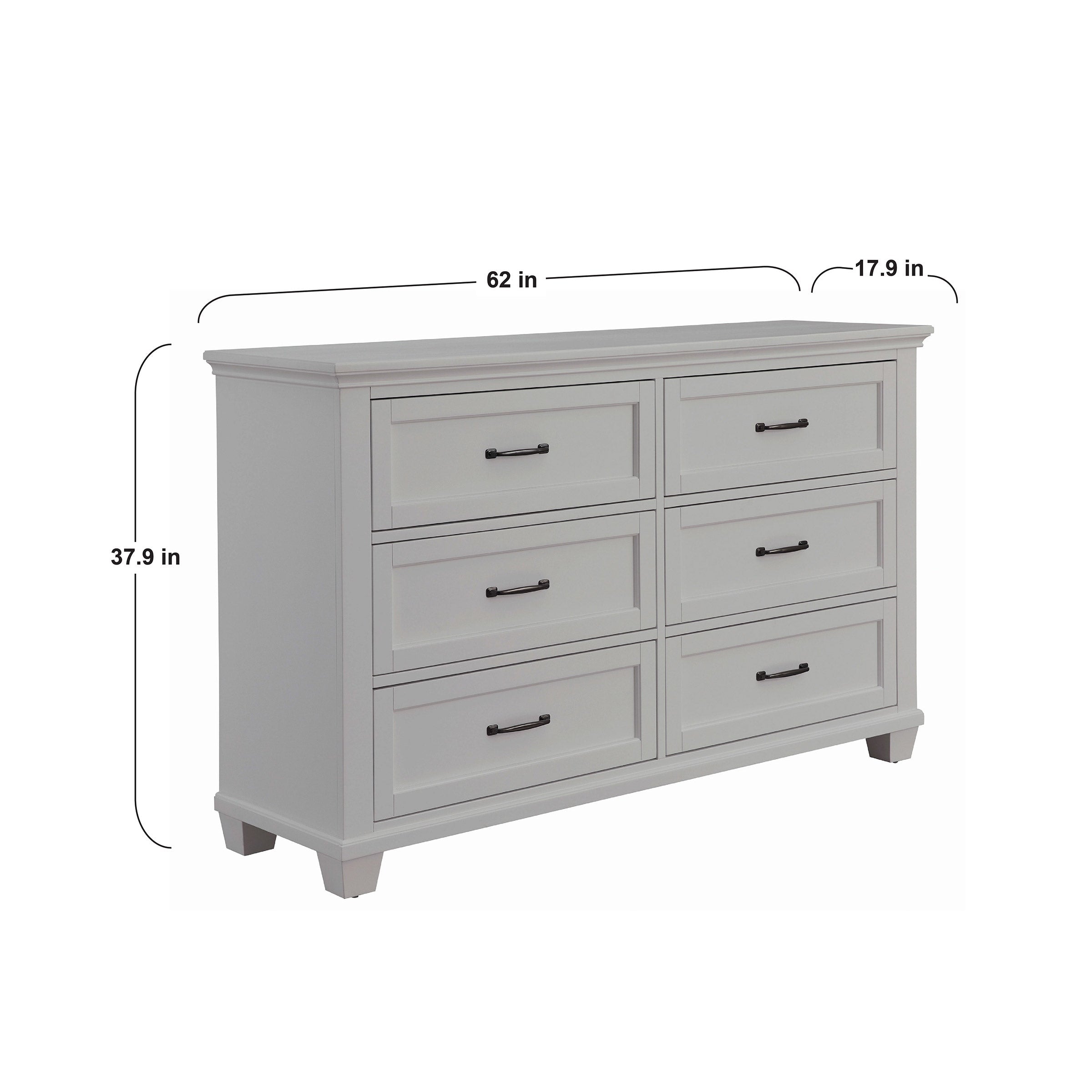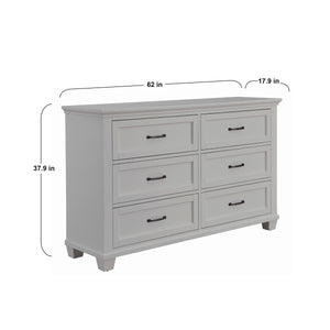Hughes 6-Drawer Dresser Color: Soft Gray Finish Constructed From Rubberwood Solids With Birch Veneers Six Storage Drawers With English Dovetail Construction and Soft-Close Drawer Guides Graphite Toned Hardware