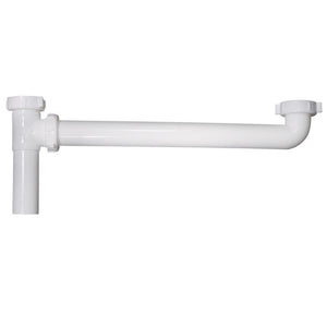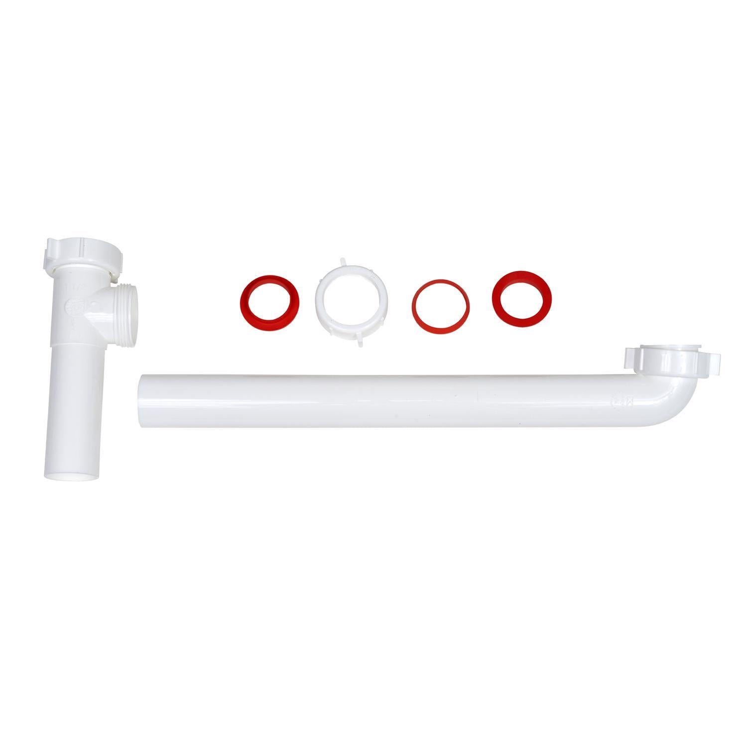 White polypropylene 16in long end outlet continuous waste with direct connect baffle tee. 1-1/2in inlet.