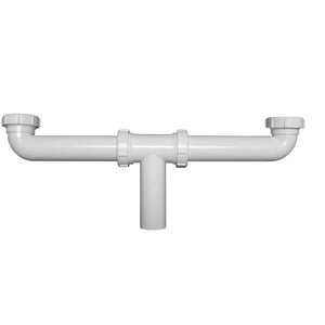 Keeney white polypropylene end outlet continuous waste allows you to connect double bowl sink strainers when the outlet is slightly offset. Easily install with slip joint connection with baffle tee. All necessary nuts and washers are included and provide a strong connection so you can avoid leaks. The white polypropylene material is durable and made to last. Keeney is a leading manufacturer and distributor of tubular drainage products. Founded in 1923, the Keeney product line includes under-sink drainage, quarter-turn valves, bath drains, toilet repair parts and more. - Plastic slip joint center outlet continuous waste - 1-1/2 in. inlet and 16 in. length - Slip joint connection with baffle tee for easy installation - Connect to a double bowl sink - Includes all necessary nuts and washers - Heavy-duty washer safeguards against leaks for a problem-free connection - White polypropylene material - Color/Finish: White - Sub Type: Slip joint center outlet continuous waste - Type: Center outlet continuous waste - Inlet Diameter: 1-1/2-in - Size: 1-1/2-in - Size - Length: 16-in - Material: Plastic - Package Quantity: 1 - Reducer Washer Included: No - CA Residents: Prop 65 Warning(s): No - UNSPSC: 40142500