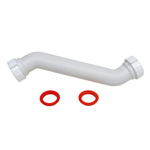 The Keeney 1-1/2 in. Plastic Double Offset Tube allows for slip joint connection for easy installation. Featuring (2) 45 bends to create a swing for offset connections, this offset tube has a 1-1/2 in. inlet and 1-1/2 in. outlet. Keeney is a leading manufacturer and distributor of tubular drainage products. Founded in 1923, the Keeney product line includes under-sink drainage, quarter-turn valves, bath drains, toilet repair parts and more. - Plastic double offset tube - 1-1/2 in. inlet and 12 in. length - Slip joint connection for easy installation - For offset connections - Can be cut to size - Durable polypropylene material - White plastic to match existing fixtures - Includes reducing washer to adapt 1-1/4 in. tailpiece to 1-1/2 in - Includes all necessary nuts and washers - Color/Finish: White - Sub Type: Slip joint double off-set - Type: Double off-set - Inlet Diameter: 1-1/2-in - Size: 1-1/2-in - Size - Length: 12-in - Material: Plastic - Package Quantity: 1 - Reducer Washer Included: Yes - CA Residents: Prop 65 Warning(s): No - UNSPSC: 40142500