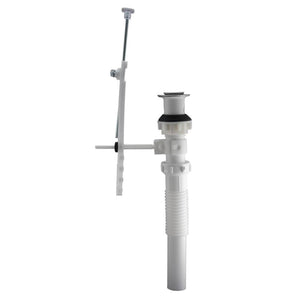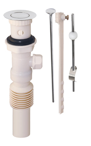 Flex n fix pop up assembly with plastic body and polished chrome top. Complete with lift rod plunger and linkage. 1-1/4 In. inlet and outlet. Features flat sided bellows that allow flexibility for unaligned connections. Pop up assembly Plastic body with polished chrome top Inlet is 1-1/4-in and outlet is 1-1/4-in Complete with lift rod plunger and linkage Manufacturer Color/Finish: Chrome Type: Decorative sink drain Actual Inner Diameter (Inches): 0.0 Actual Outer Diameter (Inches): 0.0 Depth (Inches): 0.0 Height (Inches): 0.0 Outside Diameter (Inches): 1-1/4-in Drain Included: Yes For Use with Mobile Homes: Yes For Use with RVs: Yes Lift Rod Included: Yes Lift Rod Strap Included: Yes Material: Plastic Nuts Included: Yes Package Quantity: 1 Plunger Included: No Pop-Up Body Included: Yes Rod and Ball Included: No Sink Type: Bathroom Tailpiece Included: Yes Universal Fit: Yes Washers Included: Yes CA Residents: Prop 65 Warning(s): Yes UNSPSC: 30181600