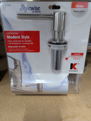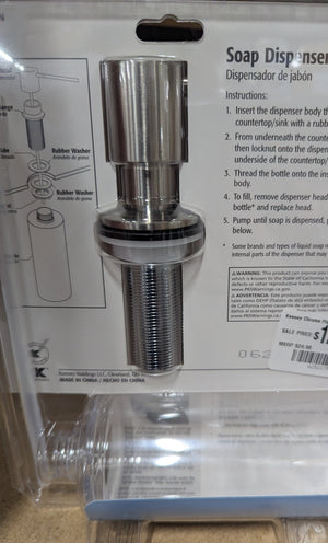 This easy-push soap dispenser is the perfect complement to your kitchen faucet. With a range of finishes and sleek lines, Keeney's K613PC modern soap and lotion dispenser coordinates well with most popular fixtures and appliances. This premium chrome-plated dispenser is constructed of high grade corrosion-resistant materials, including a stainless steel refill tube for maximum durability. Its top-fill design is convenient for simple refilling with no need to go underneath the sink. The pump holds up to 10 ounces of liquid soap or lotion and fits most sink hole cutouts.