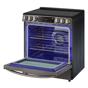 LG 6.3 cu. ft. Smart Wi-Fi Enabled InstaView ELECTRIC Slide-In Range with ProBake Convection and Air Fry ProBake Convection with Air Fry EasyClean + Self Clean Oven 3-in-1 Element for Cooking Flexibility ThinQ Technology with ThinQ Care